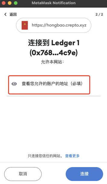 如果该网站唤起MetaMask的弹窗只是要求查看你的钱包地址,是安全的,例如下图: