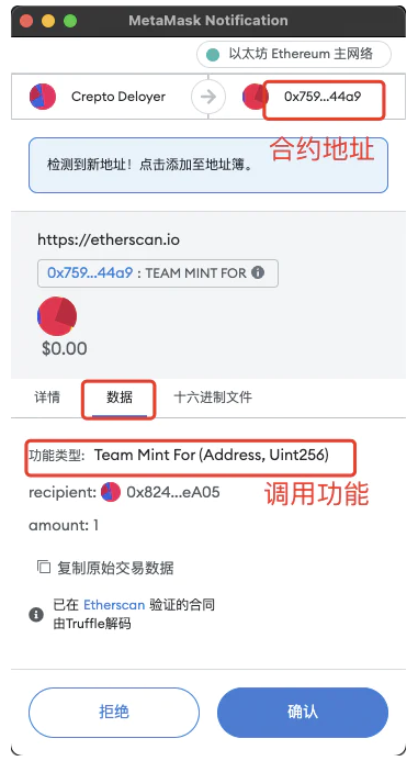 大家在很多网站上遇到更多的情况是合约调用,例如mint NFT之类的操作等。
